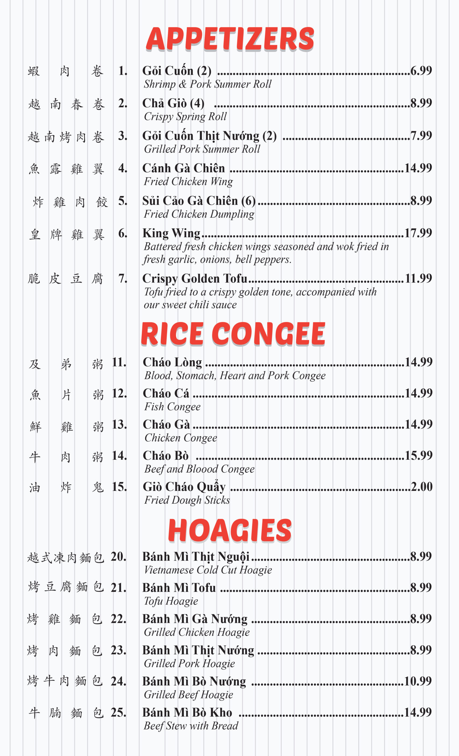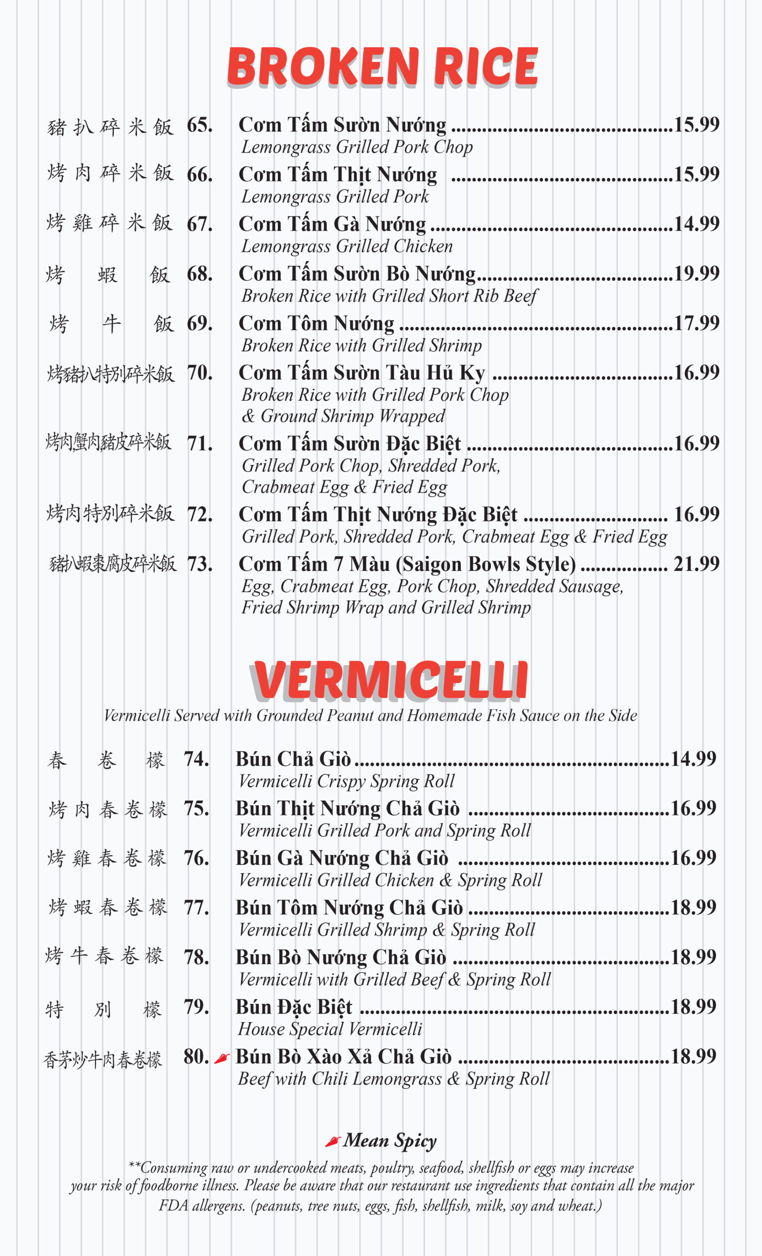 Our Menus